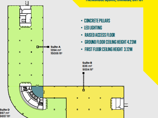At 1 Newbridge Square, we have flexible floor plates to suit any requirement, with suites available from 3,000 SqFt up to Crca 96,000 SqFt, use the tabs to see how the plates can be split up.